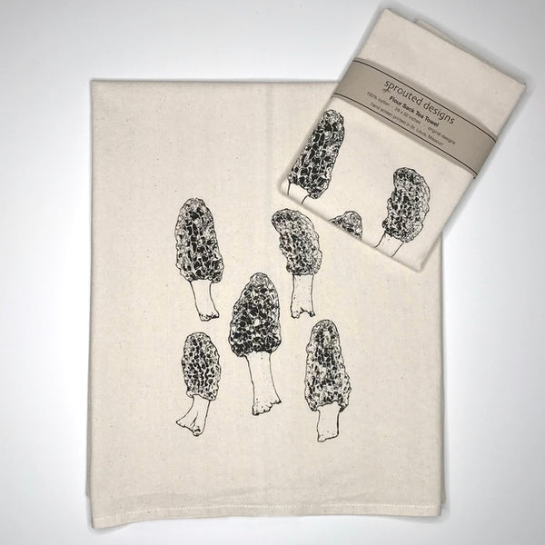 Sprouted Designs Flour Sack Towels are hand printed by artist Amanda Gray-Swain and Andrew in their studio space in St. Louis Missouri on 100% natural unbleached cotton.